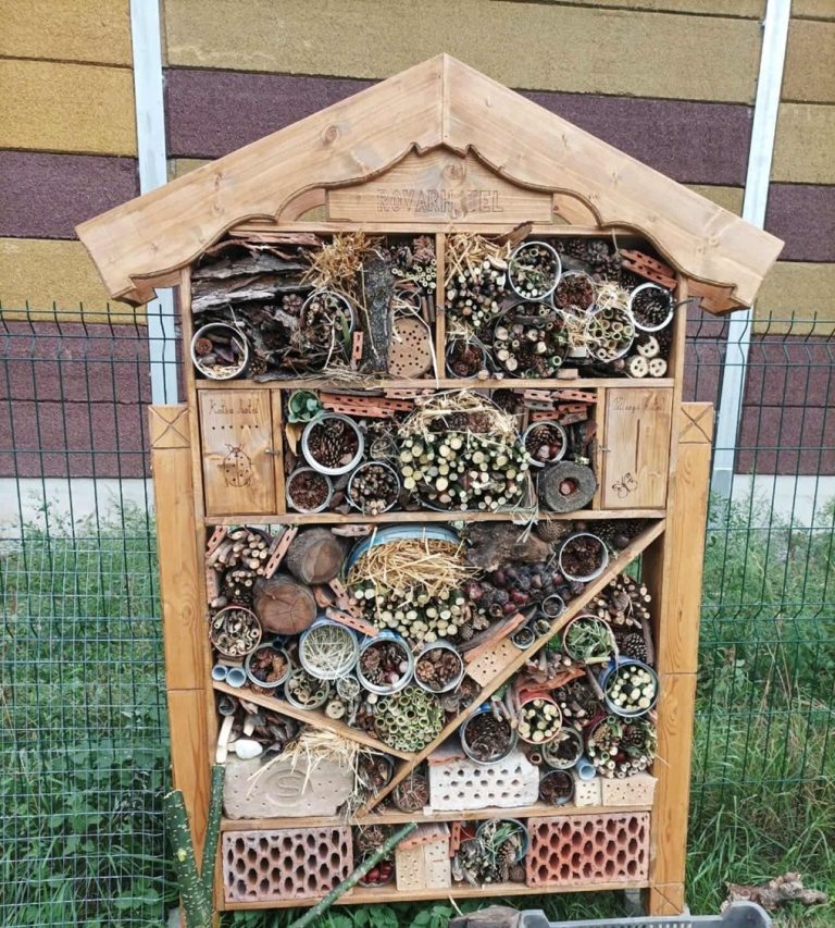 Közösen készített kis építményünkkel igyekszünk támogatni a rovarpopulációk fenntartását, ösztönözzük a biodiverzitást, hozzájárulni a környezetvédelemhez.